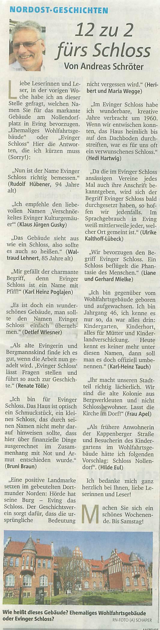 Als wir vor Jahre hier einzogen existierte der Name „Evinger Schloss“ schon, war halt nur nicht so bekannt.