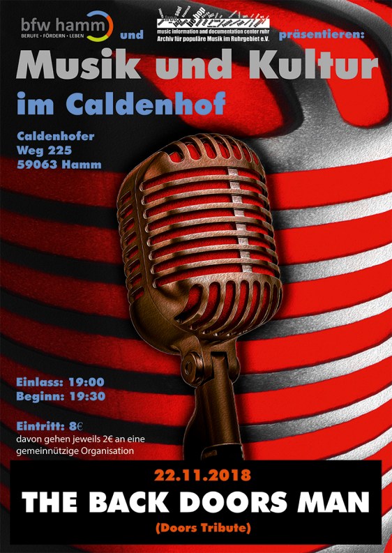 Fans und Kritiker sind sich einig: The BACK DOORS MAN werden als „beste DOORS Tribute-Band des Kontinents“ gefeiert..Die Band eifert hierbei dem Original nicht Ton für Ton nach, sondern sie interpretiert bekannte Hits wie „Light my fire“, „When the music`s over“ oder Riders on the storm“ mit einer unglaublichen Spielfreude